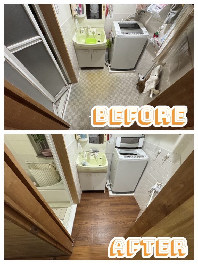 今回は、羽曳野市で行った脱衣所の床張り替え工事をご紹介します。毎日使う場所だからこそ、水回りは劣化が早く、定期的なメンテナンスが必要です。特に脱衣所は湿気が多く、床が傷みやすい場所です。